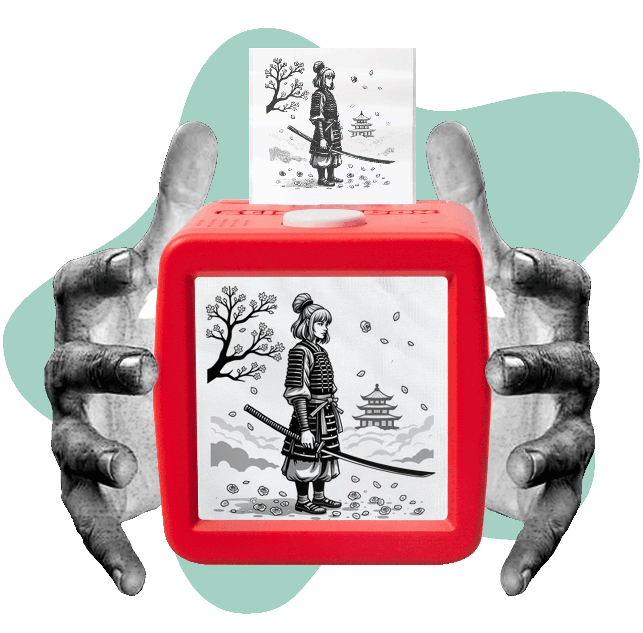 No phone or app is needed! We designed this specifically for kids to use independently. They simply press a button, speak their idea, and the sticker prints instantly. It fosters self-reliance and confidence, as they do not need adult help to bring their imagination to life.